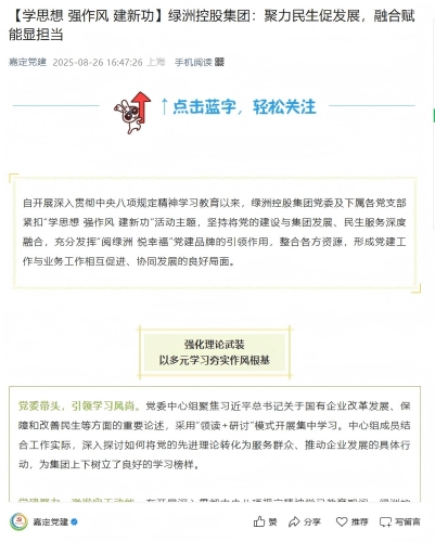 【嘉定党建】【学思想 强作风 建新功】绿洲控股集团:聚力民生促发展,融合赋能显担当