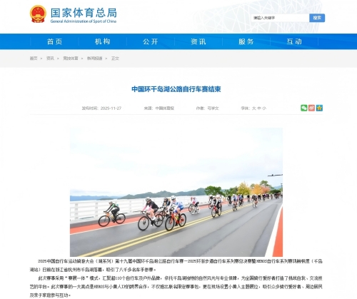 【国家体育总局】中国环千岛湖公路自行车赛结束